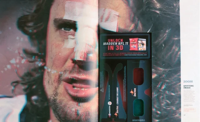 First ever 3D photo spread in ESPN magazine, with Doritos' 3D glasses inserted within.
